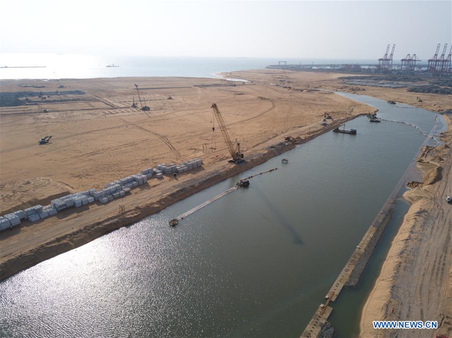 Photo taken on April 25, 2018 shows the construction site of the Colombo Port City in Colombo, Sri Lanka. Invested and developed by the China Communications Construction Company Limited (CCCC), Colombo Port City is the project between China and Sri Lanka under the China-proposed Belt and Road Initiative, especially the 21st Century Maritime Silk Road. (Xinhua/CHEC)