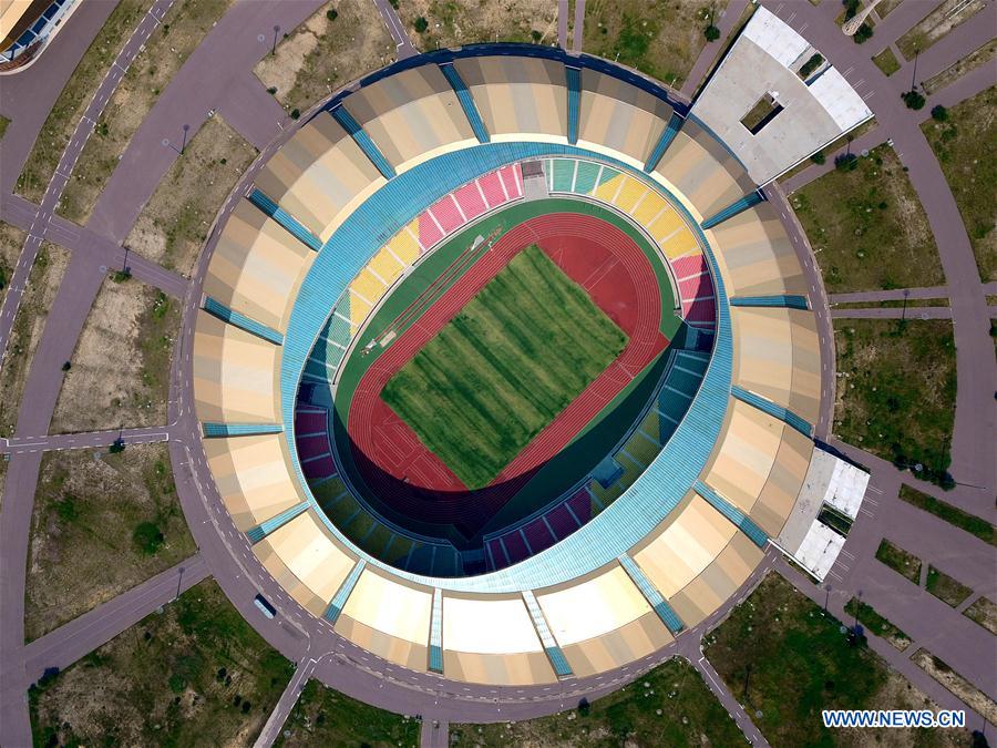 Aerial photo taken on June 10, 2018 shows the Sports Center built with Chinese assistance in Brazzaville, capital of Republic of Congo. In the past five years, China and African nations have deepened political mutual trust, mutual assistance in development and mutual learning in visions, and made concerted efforts in building the Belt and Road and a closer China-Africa community with a shared future. (Xinhua/Wang Teng)