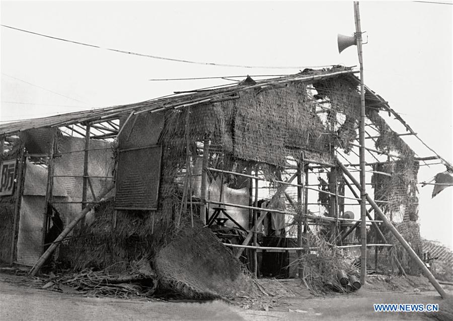 This photo taken by former military correspondent Yang Hongxiang on Sept. 9, 1983 shows a typhoon-battered barrack of combat engineers in Shenzhen, south China's Guangdong Province. The photo is part of an exhibition of Yang's photography works held at the library of Shenzhen University documenting how combat engineer corps helped build the infrastructure of the Shenzhen Special Economic Zone (SEZ). Yang had worked as a military correspondent with the first combat engineers who pioneered the construction of the Shenzhen SEZ. With photos and stories, he documented the rapid change of Shenzhen -- high-rise buildings mushrooming from barren lands, tarmacked avenues replacing dirt roads, public facilities such as museum, theater and airport rising from scratch. "Forty years ago I was recording this city and now I'm building it," says Yang, who owns an urban development business. "As a resident of Shenzhen, I've witnessed how it burgeoned and I truly take pride in the achievements we made." (Photo by Yang Hongxiang/Xinhua)