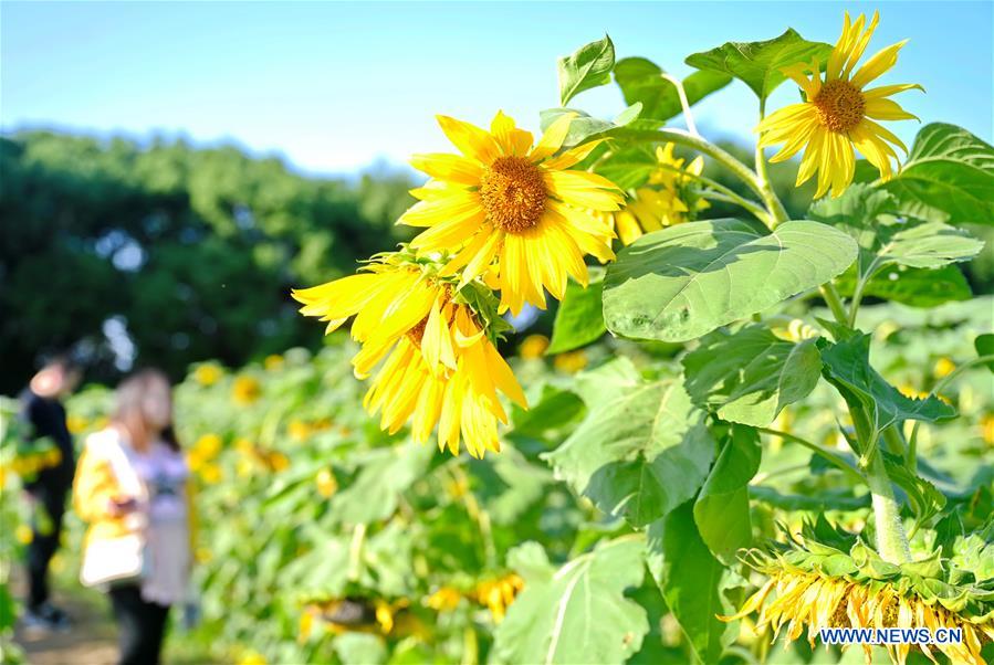 Photo taken on Oct. 23, 2020 shows sunflowers at Minjiang Park in Fuzhou, southeast China's Fujian Province. (Xinhua/Lin Shanchuan)
