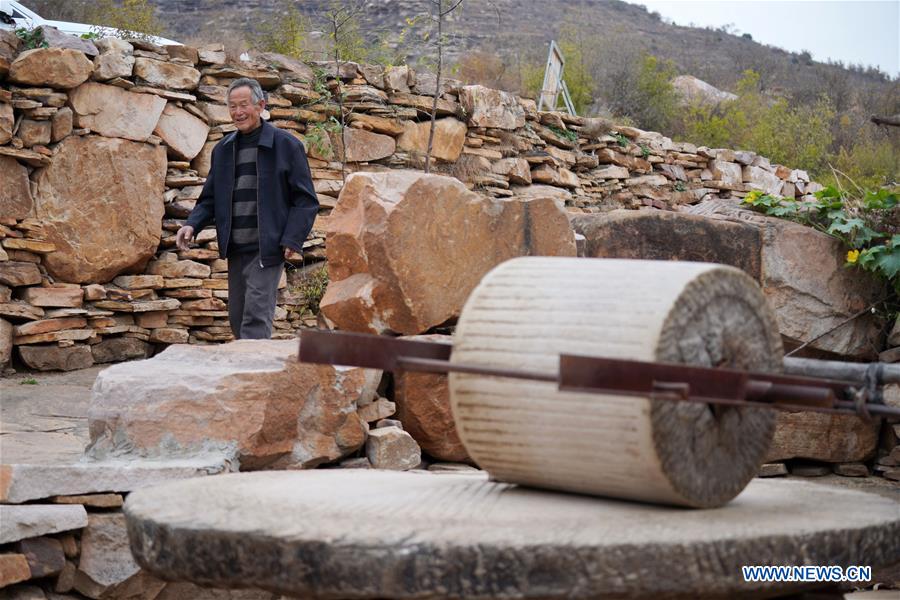 Villager Li Sanping walks at Dakang Village of Chaiguan Township in Shahe City, north China's Hebei Province, Oct. 28, 2020. Dakang Village, over 1,000 meters above sea level, is located deep in the Taihang Mountains, which ranges across Beijing and the provinces of Hebei, Shanxi and Henan. Living in this almost inaccessible rural backwater, villagers were nearly cut off from the outside world. Over generations, they have tilled a few lands on mountains making little money. In recent years, all young people of the village have gone outside for work, with only a few old people left. Li Sanping is among those elders. He was once the village Party secretary, who led the village to develop. In 2018, the village began to develop special agricultural products industry and tourism, thanks to local government's preferential policies to support agriculture. Earlier this year, Li Sanping joined his son Li Qingbin's smartphone live streaming to promote the village's agricultural products, which are greatly welcomed by netizens. After his mobile phone debut, Li was deeply attracted by this new trend. With his son's help, Li registered an online live streaming account and bought some basic equipment, taking to promoting his village's tourism resources and specialities. Now, Li's every live streaming session would draw more than 2,000 viewers, making him a local online celebrity. With his efforts, the village has sold more agricultural products than ever, and saw an increasing number of tourists. (Xinhua/Mu Yu)