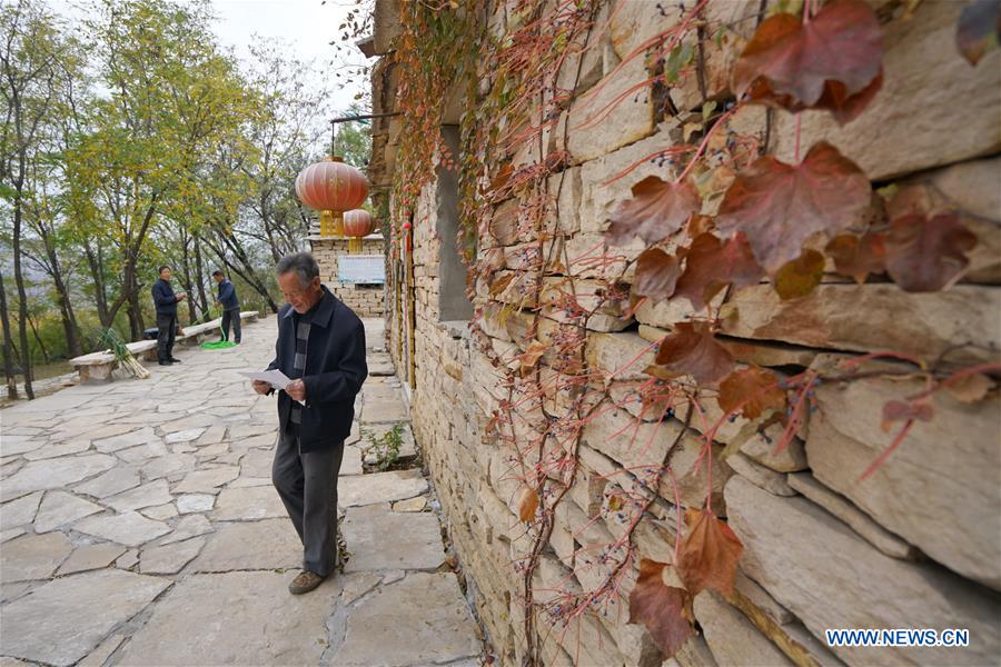 Villager Li Sanping prepares his lines before a live streaming at Dakang Village of Chaiguan Township in Shahe City, north China's Hebei Province, Oct. 28, 2020. Dakang Village, over 1,000 meters above sea level, is located deep in the Taihang Mountains, which ranges across Beijing and the provinces of Hebei, Shanxi and Henan. Living in this almost inaccessible rural backwater, villagers were nearly cut off from the outside world. Over generations, they have tilled a few lands on mountains making little money. In recent years, all young people of the village have gone outside for work, with only a few old people left. Li Sanping is among those elders. He was once the village Party secretary, who led the village to develop. In 2018, the village began to develop special agricultural products industry and tourism, thanks to local government's preferential policies to support agriculture. Earlier this year, Li Sanping joined his son Li Qingbin's smartphone live streaming to promote the village's agricultural products, which are greatly welcomed by netizens. After his mobile phone debut, Li was deeply attracted by this new trend. With his son's help, Li registered an online live streaming account and bought some basic equipment, taking to promoting his village's tourism resources and specialities. Now, Li's every live streaming session would draw more than 2,000 viewers, making him a local online celebrity. With his efforts, the village has sold more agricultural products than ever, and saw an increasing number of tourists. (Xinhua/Mu Yu)