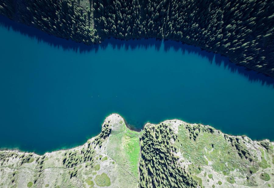 An aerial drone photo taken on May 3, 2025 shows the Kolsai Lakes National Park in Almaty Region, Kazakhstan.