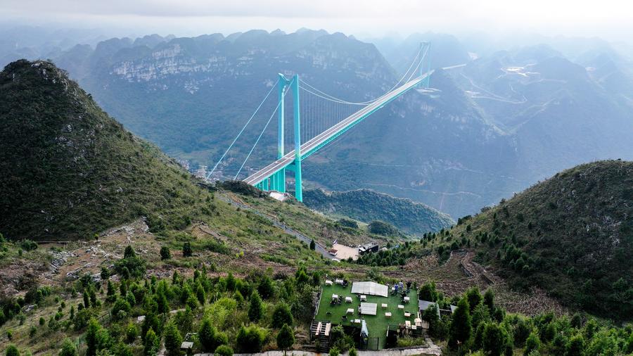 GUIYANG, Nov. 27 (Xinhua) -- The Huajiang Grand Canyon Bridge, soaring 625 meters above the Beipan River in Guizhou's mountainous terrain, is the world's highest bridge. The mega-project is also helping boost tourism in the nearby areas, which have benefited from the improved traffic condition.