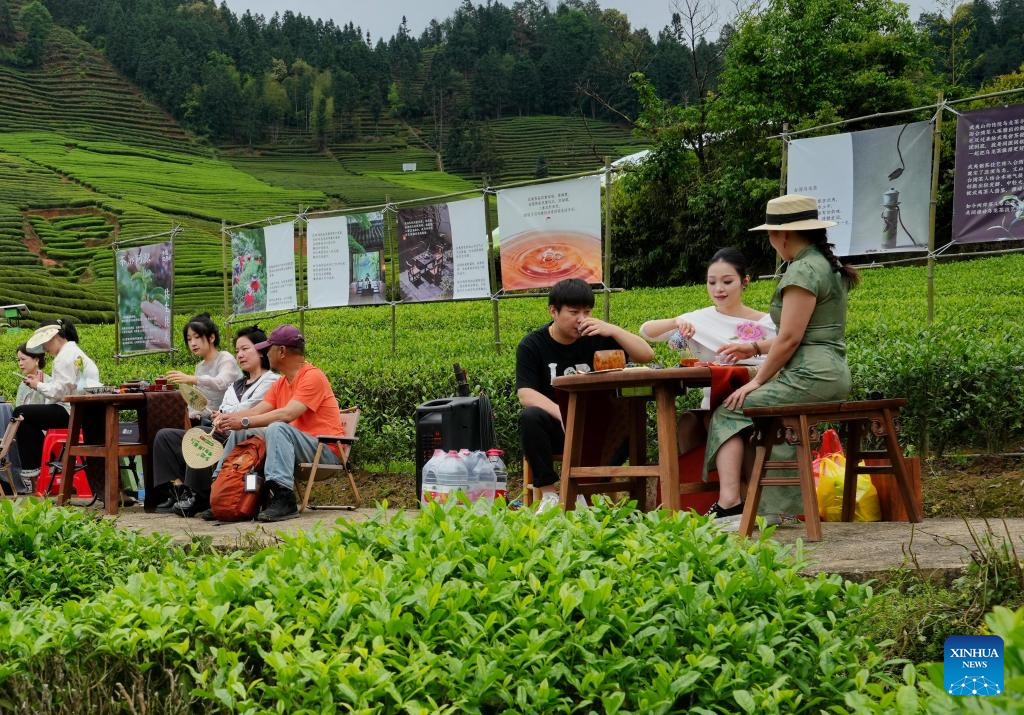People taste tea during a cultural event at a tea garden in Xingcun Town, Wuyishan, southeast China's Fujian Province, April 15, 2026. (Photo by Chen Ying/Xinhua)